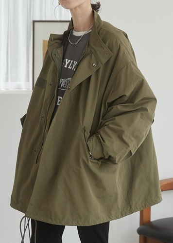 カラーは カーキ・ブラック・ベージュ の3色。着用カラーは「カーキ」。
