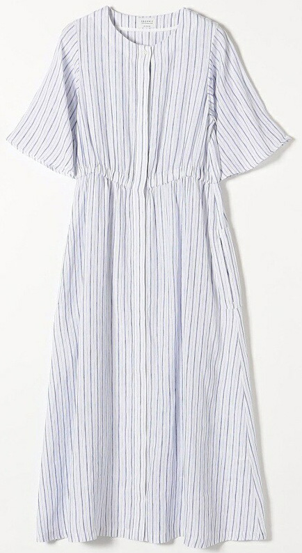 山岸鮎美(夏帆)が着ていた ブルー系ストライプのワンピース は SHIPS any(シップス エニィ)の オーガニック リネン フレアスリーブ ワンピース、14,960円。
