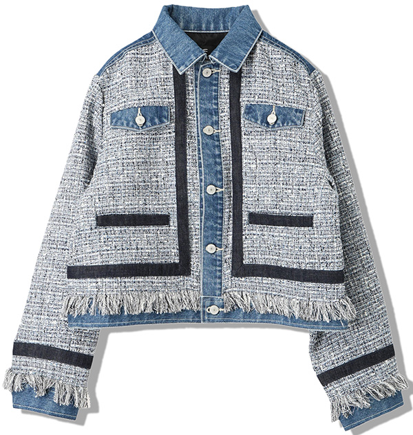 軽くソフトな風合いのツイードと加工感のあるデニムのリメイク風コンビネーションがスタイリッシュ。