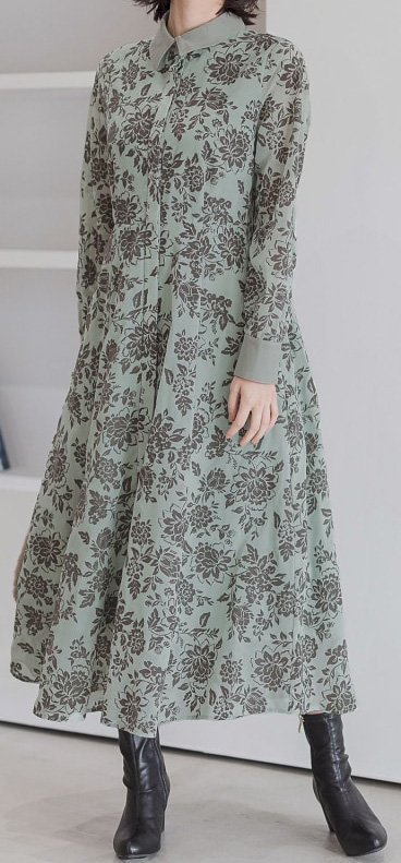 勝男の合コン相手(城戸内アカリ)が着ていた グリーン系花柄ワンピース は Andemiu(アンデミュウ)の フラワーフロッキーワンピース、14,300円。