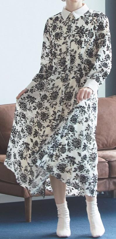 シフォンジョーゼットの柔らかさとシアー感がフェミニンなワンピース。