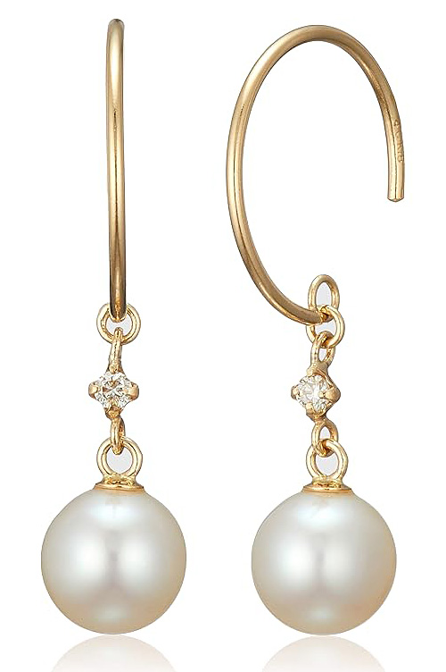 柔らかい色合いの淡水パールとダイヤモンドが揺れるピアス。