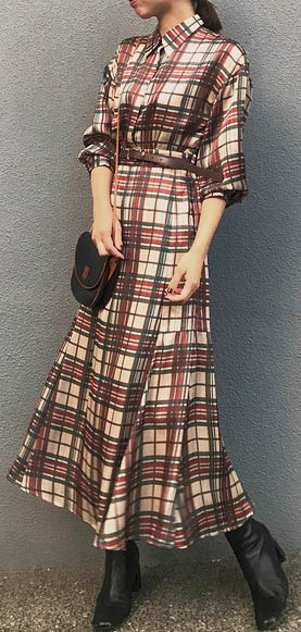 山岸鮎美(夏帆)が着ていた チェックのワンピース は AMERI VINTAGE(アメリヴィンテージ)の CHECK MERMAID DRESS(チェックマーメイドドレス)、23,320円。