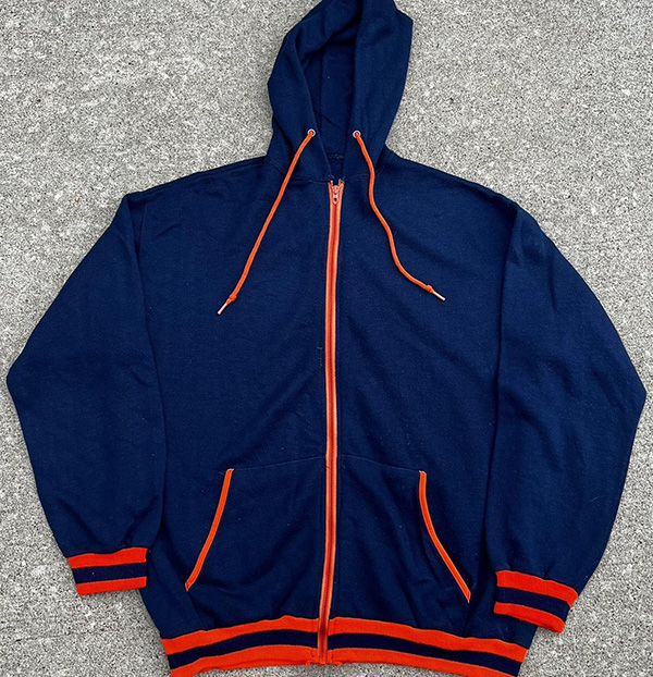 1970’s〜1980’sのヴィンテージメンズフーディー。ネイビーに鮮やかなオレンジの配色が映えます。