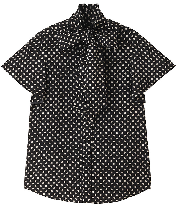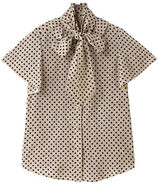 クラシカルなドット柄のボウタイ付きのブラウス。