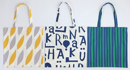 日本を代表する染色家・アーティストの柚木沙弥郎(ゆのき さみろう)デザインのテキスタイルで仕立てたコットン100%のトートバッグ。