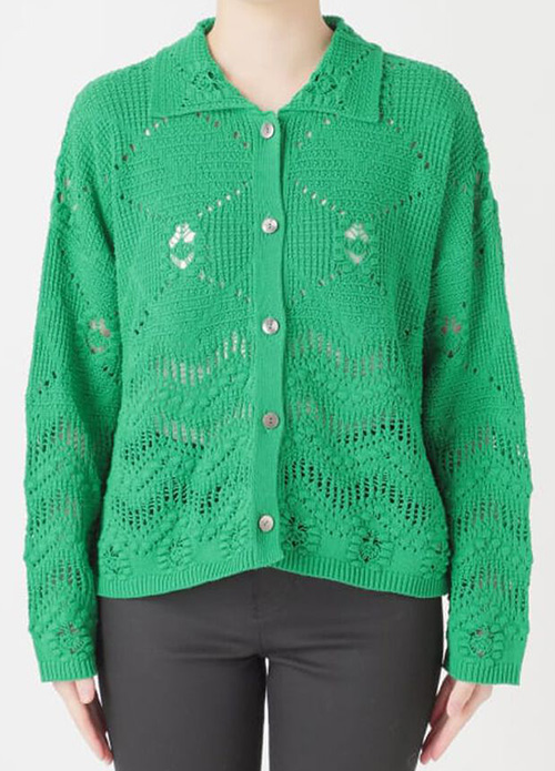 中田ユメ(畑芽育)が着ていた グリーンのカーディガン は JOURNAL STANDARD(ジャーナルスタンダード)の ネイティブジャガードシャツ、16,500円。