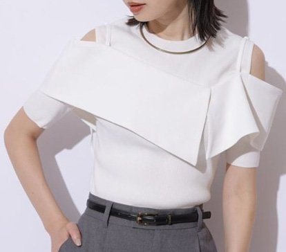 花村薫(波瑠)が着ていた 白いリブニット は SOÉJU(ソージュ)の ランダムリブ5分袖ニット、9,900円。