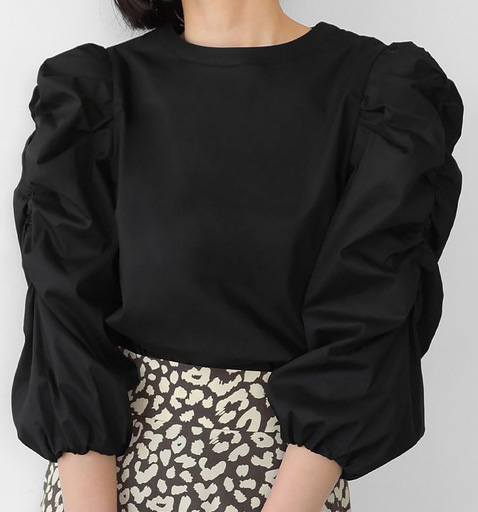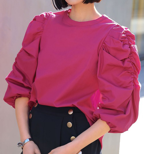 ボリュームたっぷりのギャザースリーブのブラウス。