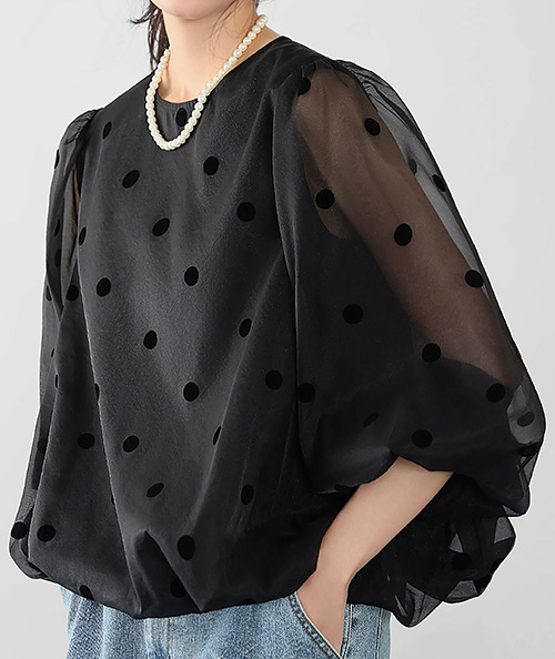 こちらは ELFRANK(エルフランク)の ドットシアーバルーンブラウス。