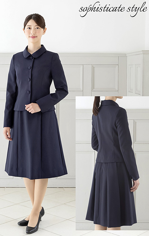 シワになりにくいウール100%素材のワンピース+ジャケットのセット。