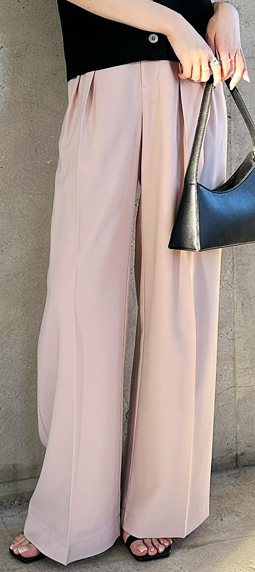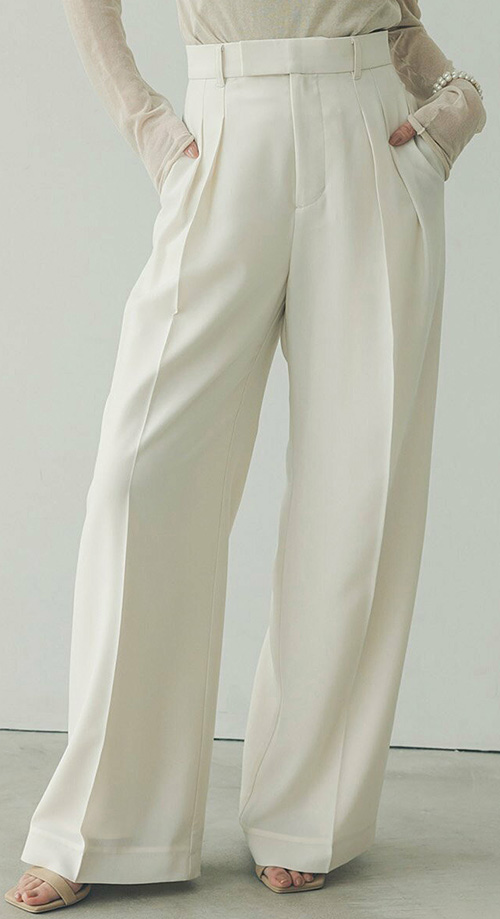 深めのタックが縦ラインを強調して足を長く見せてくれます。