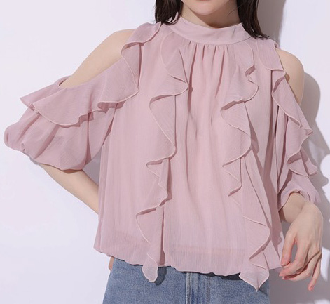 日高茉海恵(川栄李奈)が着ていた ピンクのブラウス は Rirandture(リランドチュール)の オフショルダーフリルブラウス、16,500円。
