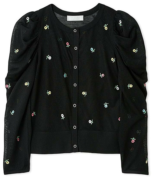 ドットのような花柄刺繍を施したシアーカーディガン。