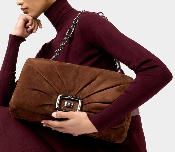 日高茉海恵(川栄李奈)が持っていた ブラウンのバッグ は Roger Vivier(ロジェ ヴィヴィエ)の Viv’ Choc Bag(ヴィヴ ショック バッグ)ラージ。
