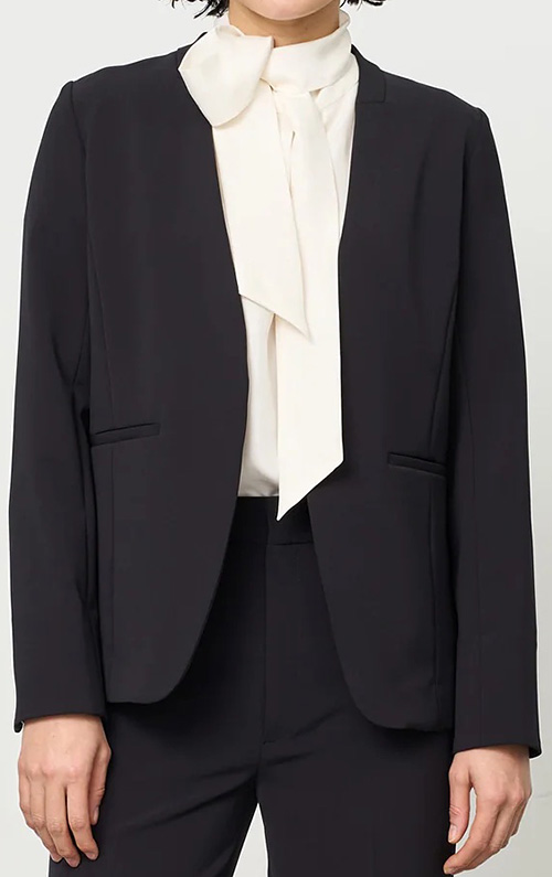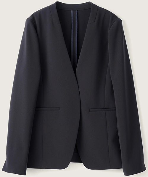花村薫(波瑠)が着ていた ネイビーのジャケット は SOÉJU(ソージュ)の ストレッチファインノーカラージャケット、26,400円。