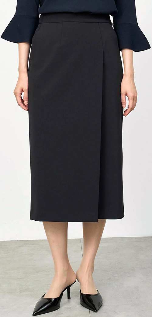 花村薫(波瑠)が着ていた ネイビーのスカート は SOÉJU(ソージュ)の ストレッチファインロングタイトスカート、16,500円。