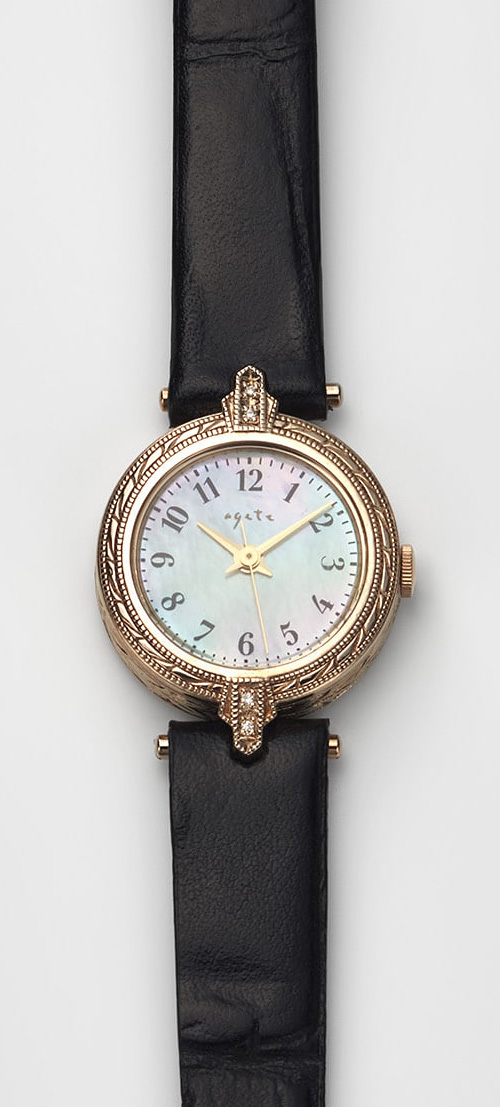 agete(アガット)の ラウンドフェイス革ベルトウォッチ。