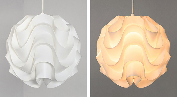 シェードは数学的な関数のサインカーブをモチーフとし、難燃性PE樹脂で作られています。