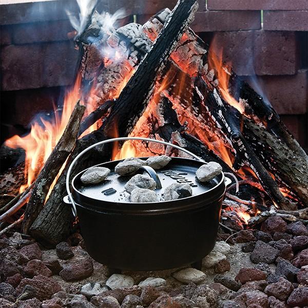 ダッチオーブンはいくつも重ねて同時に調理できるのが特徴。ご飯炊いて、サイドディッシュ、メインディッシュ、デザートと一度にできるのが便利。