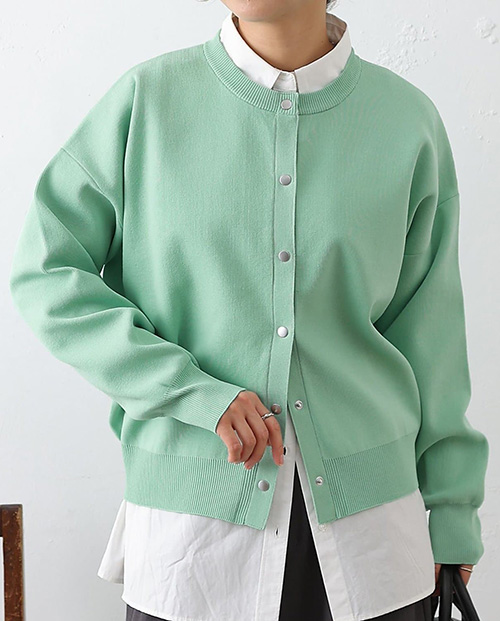 スナップボタンがカジュアルで、パンツにもスカートにも合わせやすいアイテム。